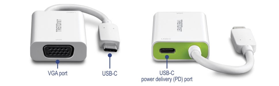 USB-C power delivery port allows you to charge a USB-C compatible laptop with the original charger while using VGA simultaneously