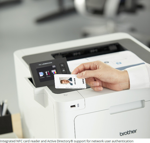Not compatible with all NFC formats. Works with Secure Function Lock. Print Release requires third-party solution. For a list of compatible NFC formats, see manufacturer’s specifications.