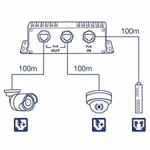 Extends a PoE/PoE+/UPoE network connection an additional 100 meters for a total distance of up to 200 meters (656 ft.) from the PoE source