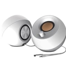Inspired by the zen Japanese rock garden, the orb-shaped Creative Pebble is a sleek and elegant 2.0 speaker system that looks perfect in any home and office. It features a 45° elevated sound stage for enhanced audio projection and is powered by a single USB cable for hassle-free music entertainment.