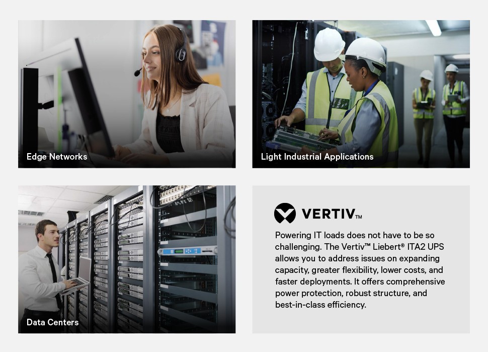 Protect critical IT systems from all key electrical threats. The Vertiv Liebert ITA2 is a double conversion UPS that offer clean and consistent power.
