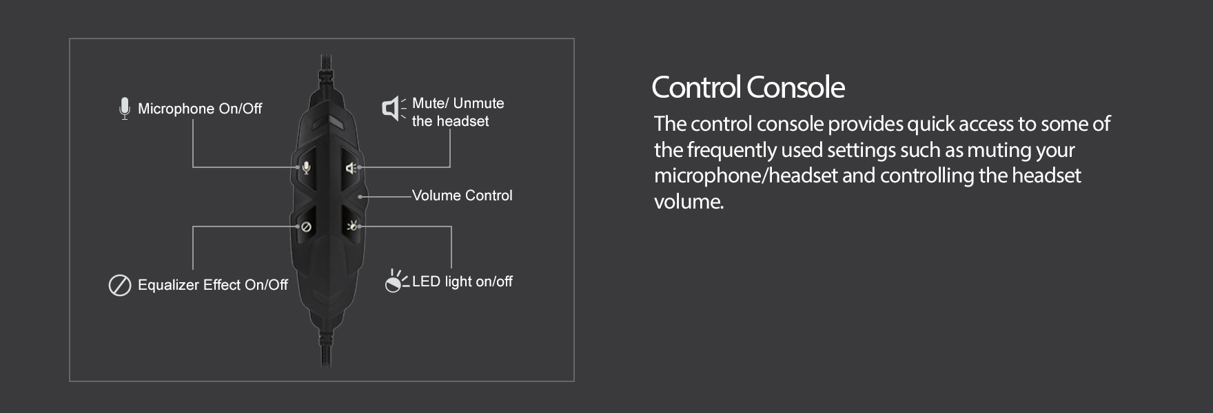 The control console provides quick access to some of the frequently used settings such as muting your microphone/headset and controlling the headset volume.