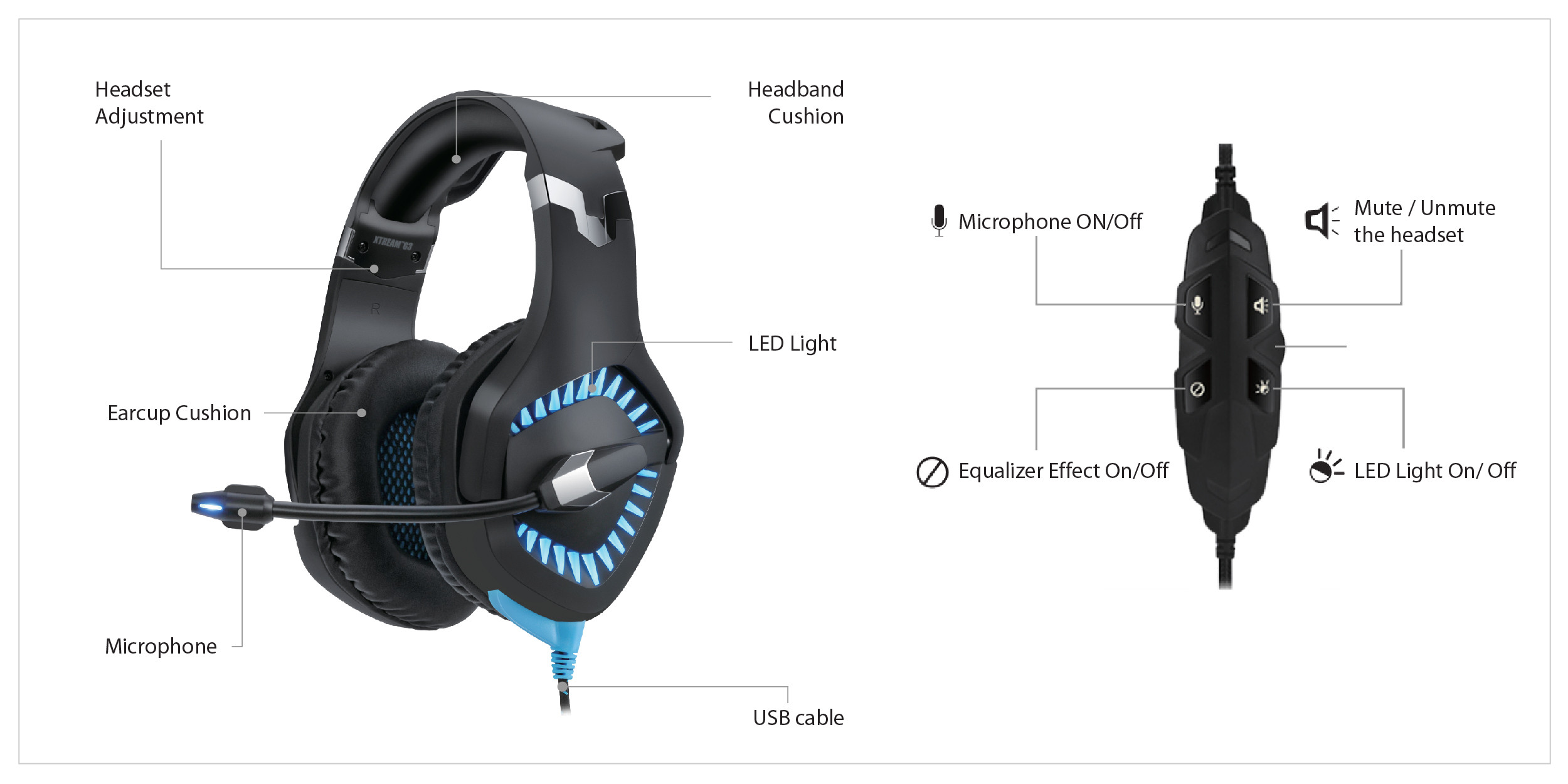 The LED lighting design provides a unique look and aura to the overall design of the headset.