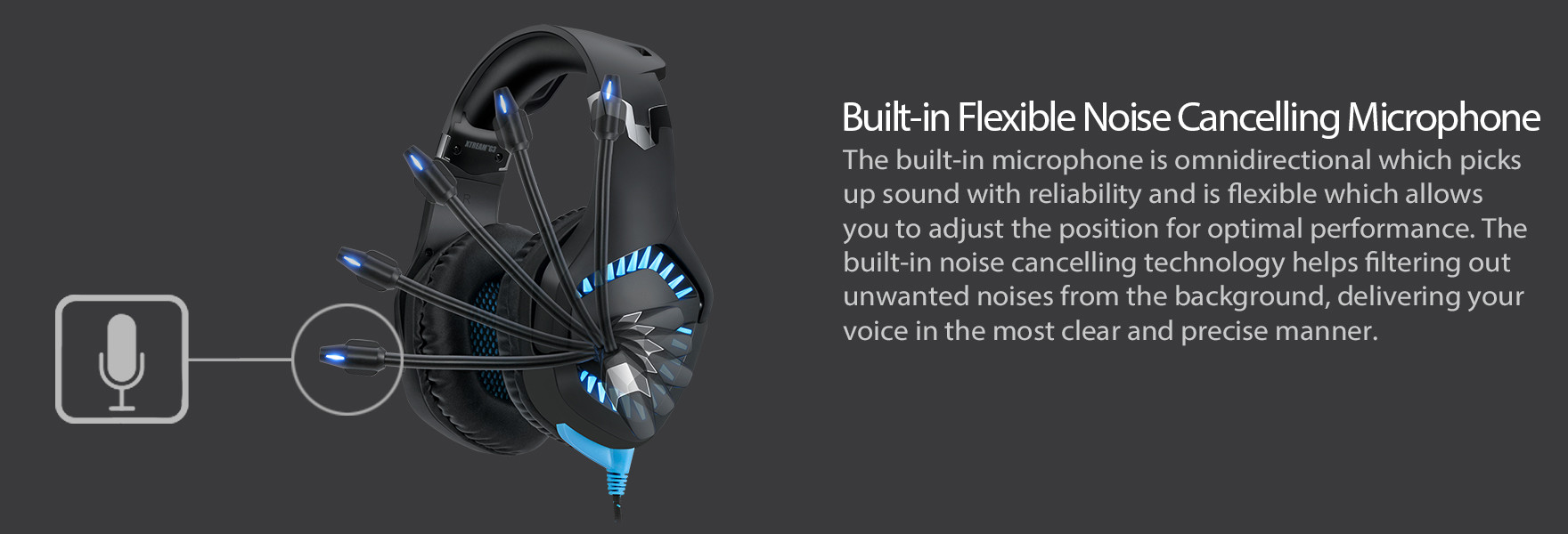 The built-in microphone is omnidirectional which picks up sound with reliability and is flexible which allows you to adjust the position for optimal performance. The built-in noise cancelling technology helps filtering out unwanted noises from the background, delivering your voice in the most clear and precise manner.