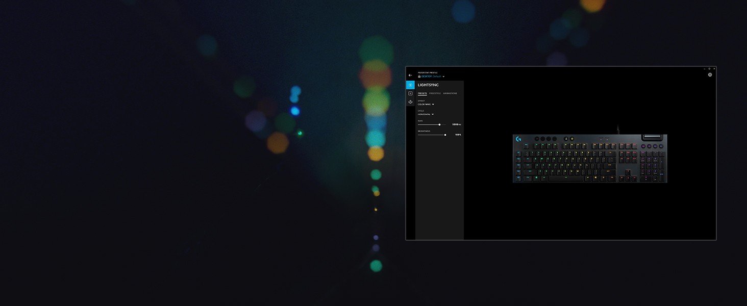 G815 features approx. 16.8M colors with LIGHTSYNC intelligent RGB technology. Customize per-key lighting colors, create animations, or sync to games, music and videos.