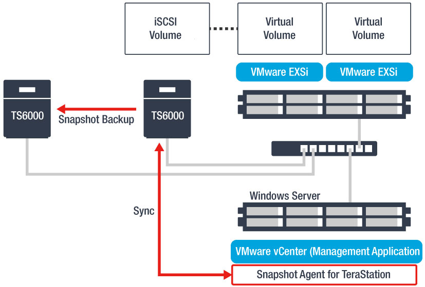 When a management plug-in “Snapshot Agent for TeraStation” is installed in vCenter Server (for Windows Server) in the VMware vSphere environment, the corresponding VM is automatically stopped according to the backup time set by you and the VM is automatically restored after Snapshot shooting.