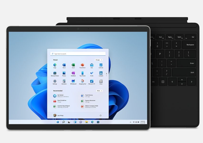 Work your way anywhere. Surface Pro Keyboard is uniquely designed to adjust to virtually any angle. Simply click into place and use three different ways: with Surface Pro X Kickstand open as a laptop, folded back for a tablet, and closed to shield the display and conserve battery life.