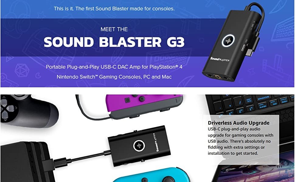 Without leaving your game screen, our GameVoice Mix volume dial allows you to easily increase your voice chat volume during a raid to hear your team better, or decrease the chatter and amp up your gaming audio during a particularly climatic scene on your game – simply plug in the G3 via the USB-C and Optical / Line-in port to better your gameplay.