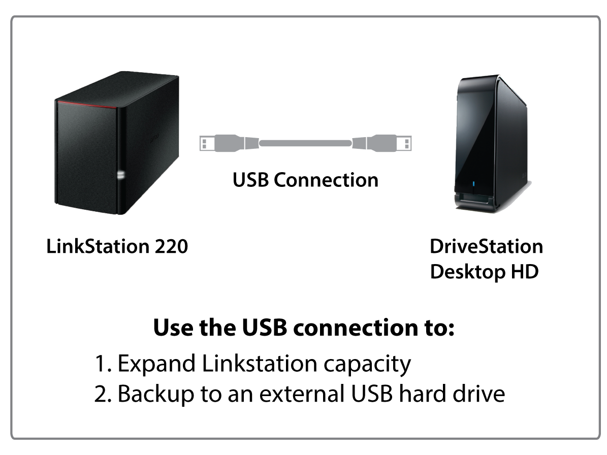 The LinkStation 220 comes equipped with a USB port, allowing users to increase storage capacity or backup to another device for an extra level of data protection