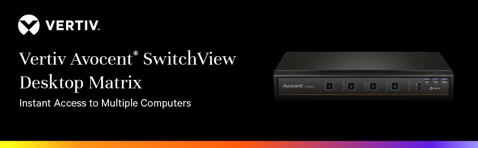 Vertiv Avocent SwitchView Desktop KVM Switches provide streamlined connectivity and control of today's multimedia desktops to help meet tight deadlines and transfer data among different computers and peripheral devices. 4K UHD support provides advanced video function for DVI-I, HDMI and Display Port to assure highly accurate image quality and high-definition playback.