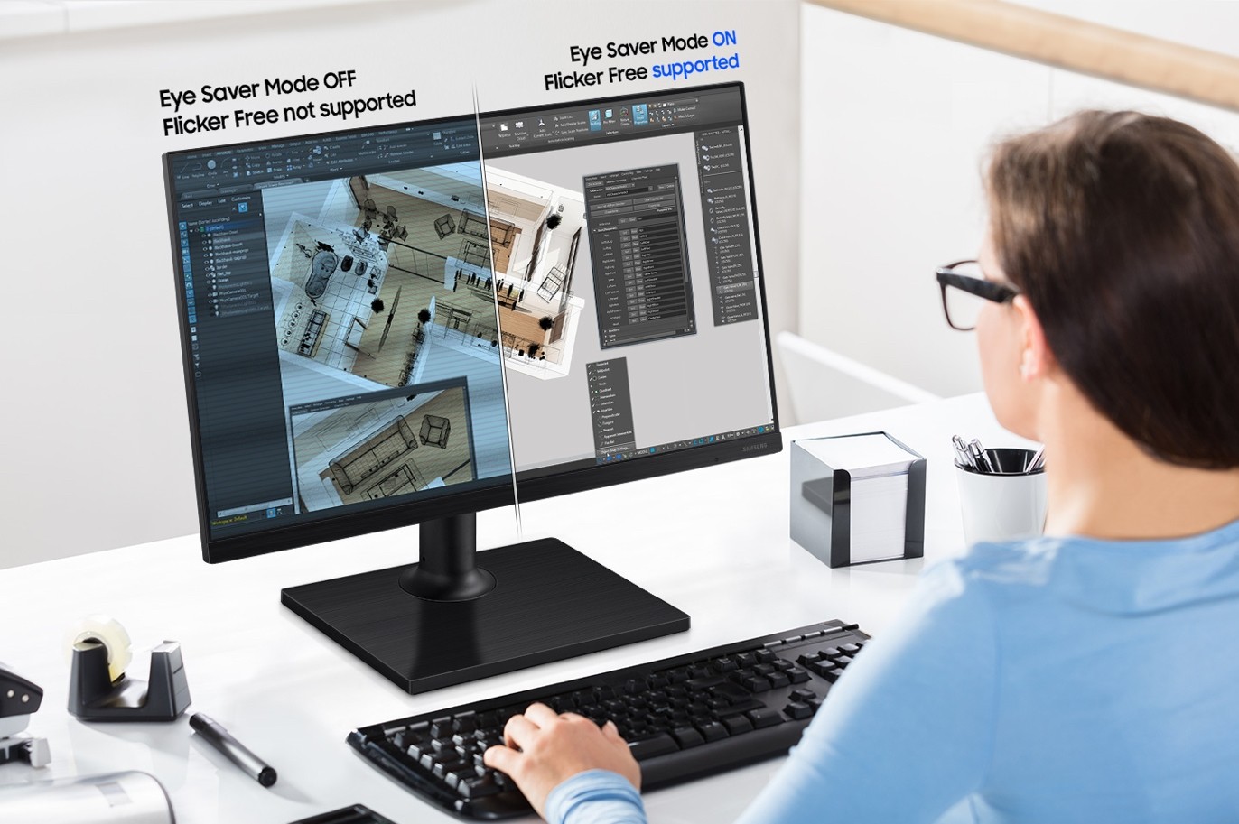 Eye Saver Mode lowers blue light levels, to help reduce eye strain during long work hours. Flicker Free technology adds further viewing comfort by eliminating flickering at all levels of brightness.