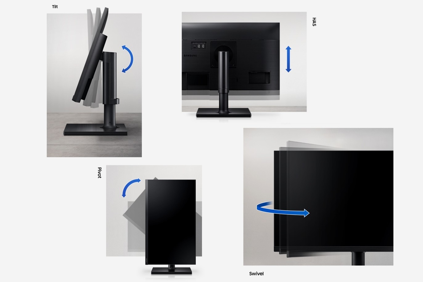 The Samsung FT45 Series provides ergonomic features that enhance both all-day comfort and productivity. A fully adjustable stand puts the impressive picture right where you need it, and Eye Saver mode and Flicker Free technology help to relieve eye strain and fatigue. Versatile connectivity simplifies things, with HDMI, DisplayPort and a USB hub. Energy-saving features help to reduce power consumption by up to 10% for a cost-effective desktop monitor solution.