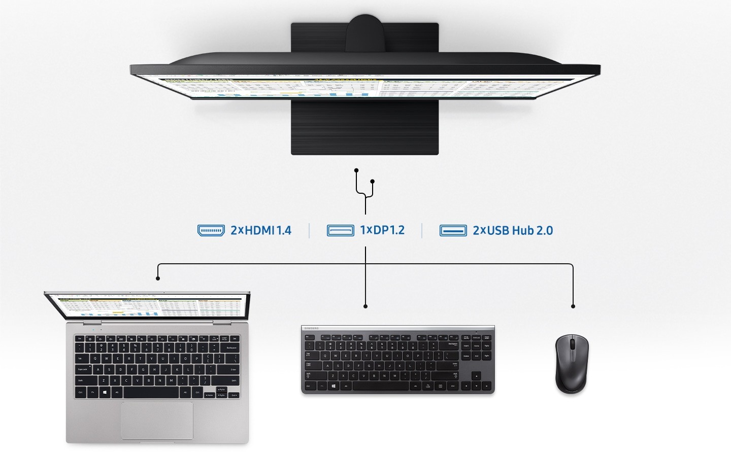 The IPS panel preserves colour vividness and detail across the whole screen. Now, whole teams can work comfortably on the productivity-boosting wide display and view accurate tones and shades from 178˚ all around.