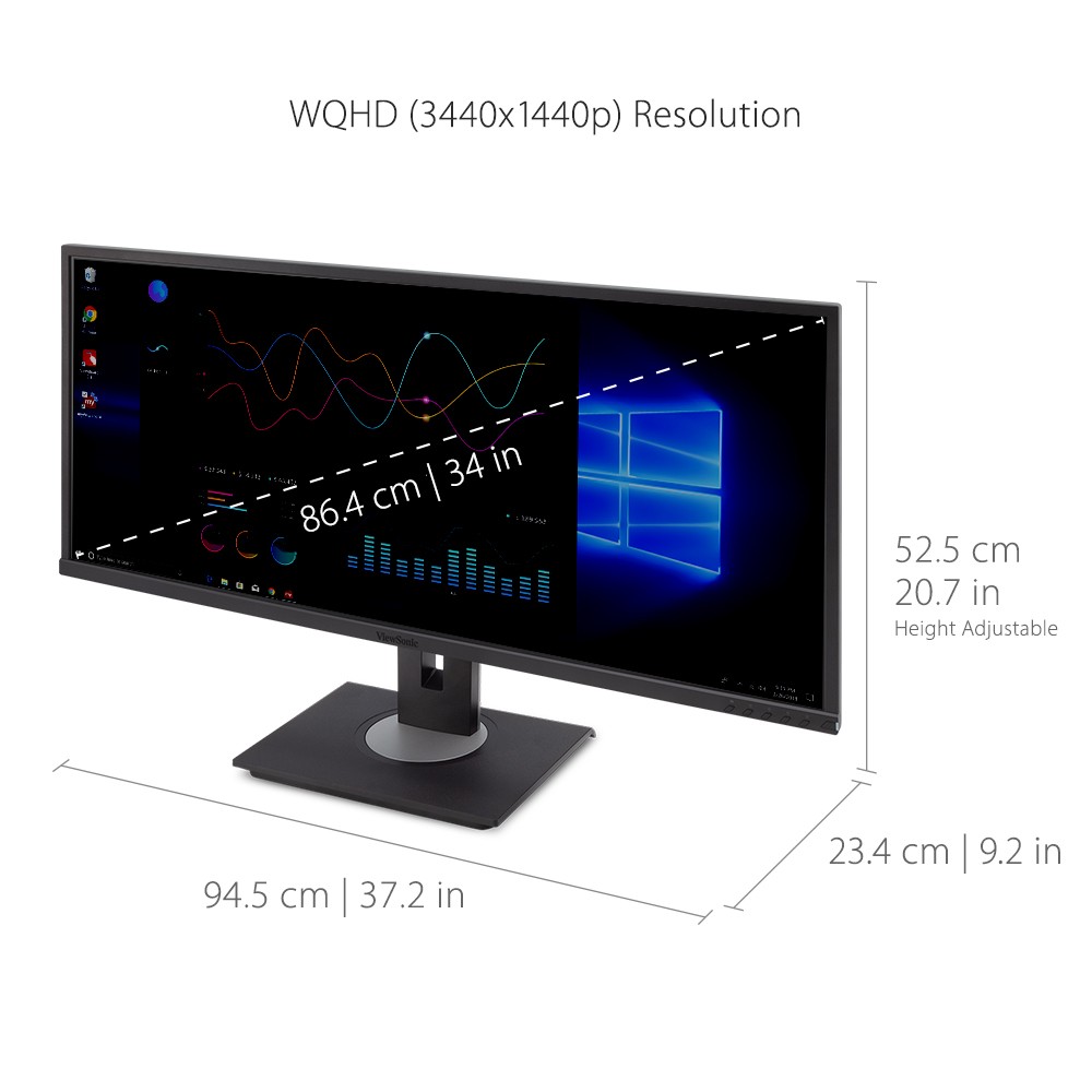 Wide Quad HD 3440 x 1440 resolution and a 21:9 aspect ratio offers amazingly sharp picture quality on an ultra-wide screen. It delivers about 1.8 times more pixels than an ultra-wide 21:9 Full HD monitor, and about 2.4 times more pixels than a standard 16:9 Full HD monitor.