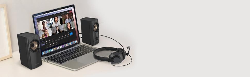 Switch between audio playback from the Creative T60 to your headset instantly with just a button press and skip the hassle of having to plug and unplug your headset all the time.