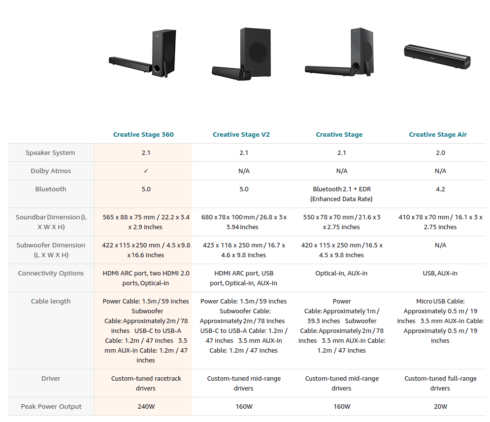 Fill the halls of your home with cinematic audio and real-life atmospheric simulation for an elevated home entertainment experience! Now offering the integration of Dolby Atmos, an acclaimed surround sound technology, Creative Stage 360 sports our brand-new upgraded system drivers, as well as a host of new connectivity options for an all-in-one home audio upgrade.