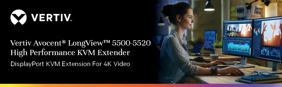 The Vertiv Avocent LongView 5500 and LongView 5520 are single and dual head KVM extenders that provide remote access to multiple devices over an existing IP network. The KVM extender provides users in broadcasting, control centers, and other industries requiring access to multiple devices over UP, the ability to surpass the restriction distance can place, along with providing the speed and imagery they need to be effective and efficient.
