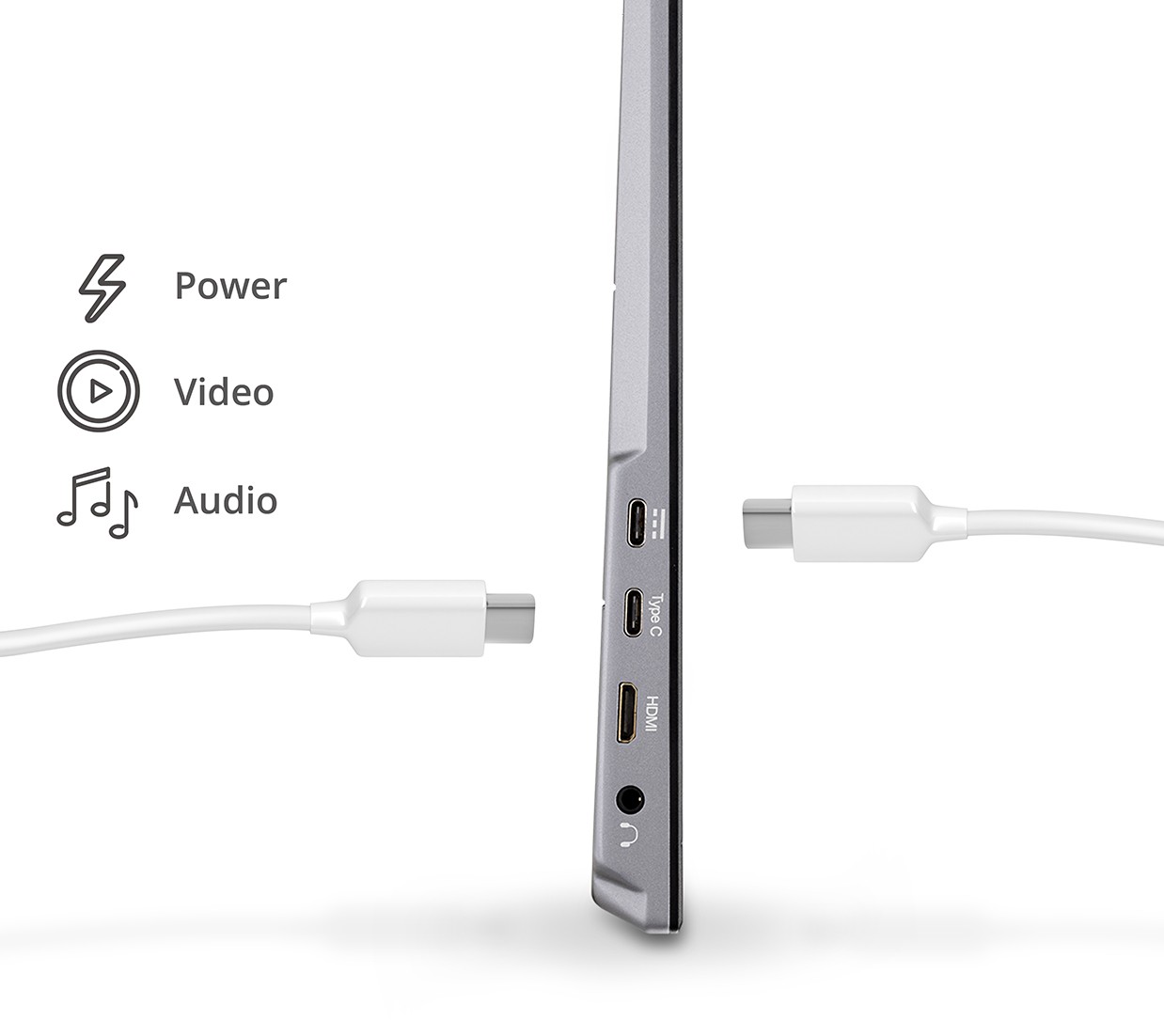 An included USB Type-C ports deliver audio, and video over a single cable. What's more, this USB Type-C port also delivers two-way power: a connected laptop can power the monitor, or the monitor can power a connected laptop via USB-C power bank or AC adapter and outlet.