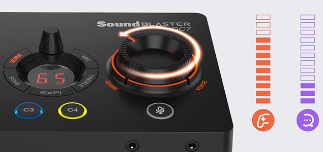 Sound Blaster GC7 allows you to control the right balance of your game and chat audio without having to leave your game screen or opening mixer settings with the GameVoice Mix feature.