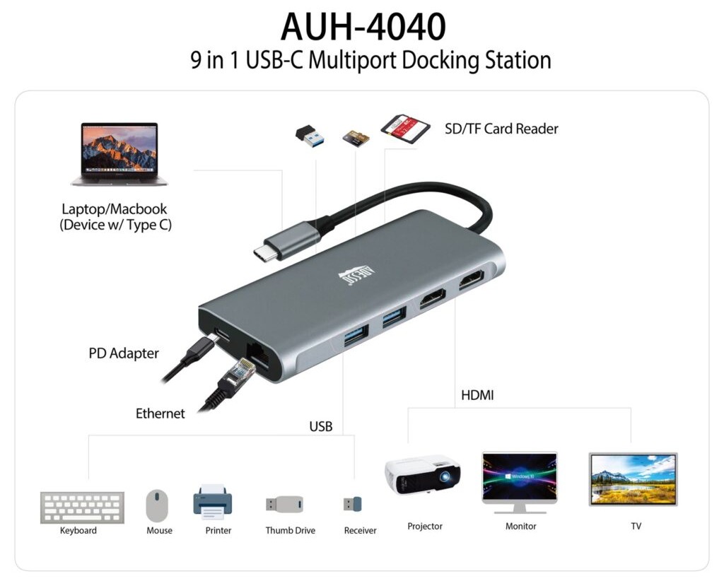 Expand your laptop’s connection port with this USB Type-C multiport docking station. It has dual HDMI ports for transmitting 8K content to your external monitor and can