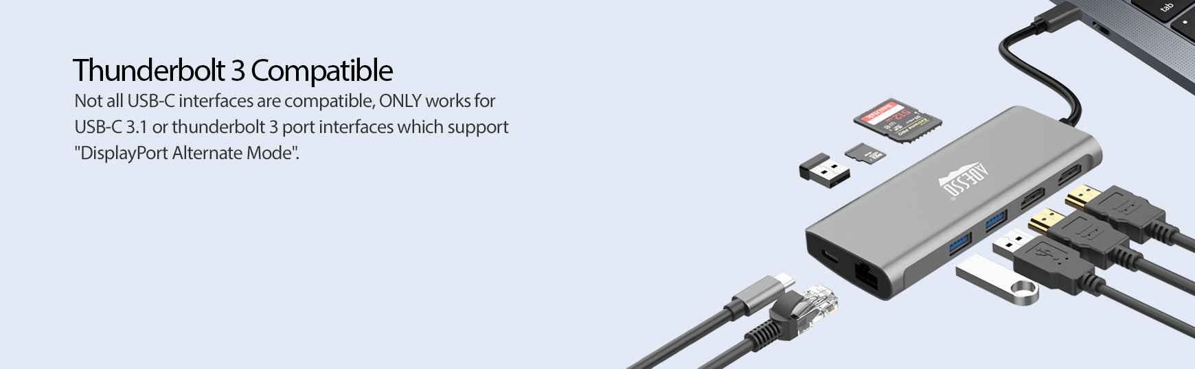 Not all USB-C interfaces are compatible, ONLY works for USB-C 3.1 or Thunderbolt 3 port interfaces, which support “DisplayPort Alternate Mode.”