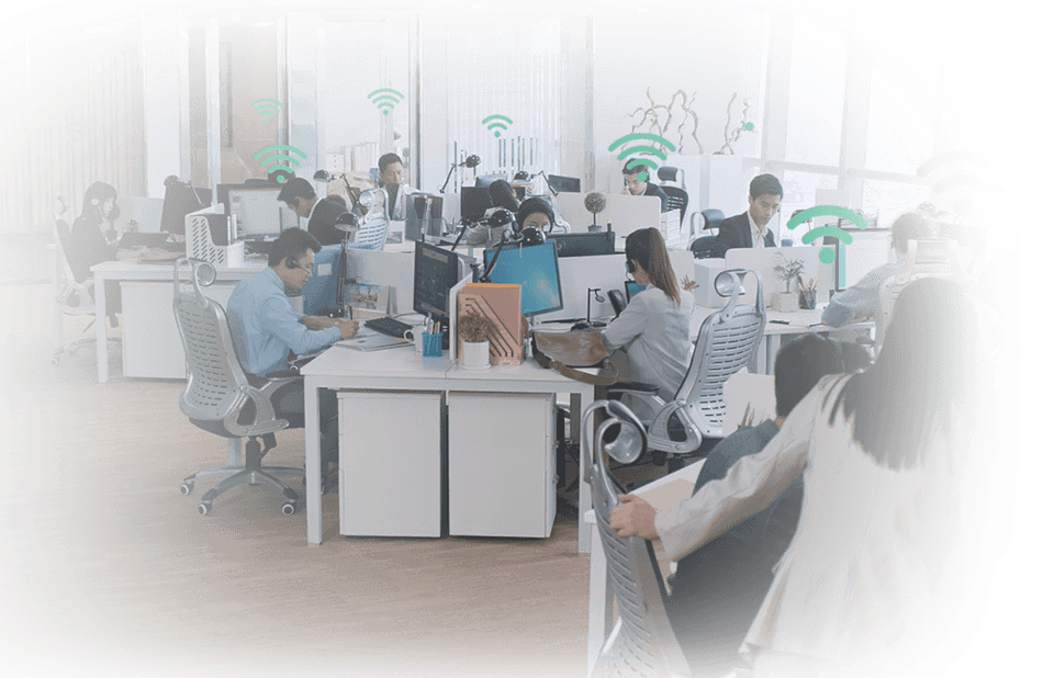 No matter when and where your conversation begins, the professional headsets can always catch up your steps. With up to 160m wireless range and 14 hours talk time, it is suitable for users' daily communication needs. In addition, the product supports high density installation in the open office, which allows up to 200 users (Europe) enjoy the wireless communication at the same time.