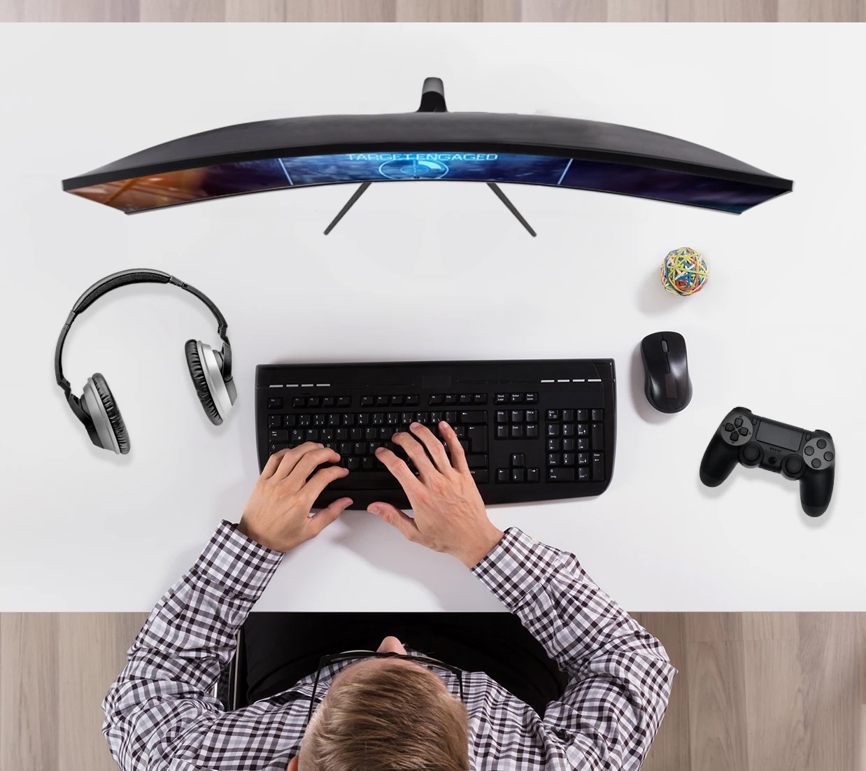 A sleek, concave screen with ultra-thin bezels delivers an incredibly immersive viewing experience with panoramic images, vivid color, and incredible detail.