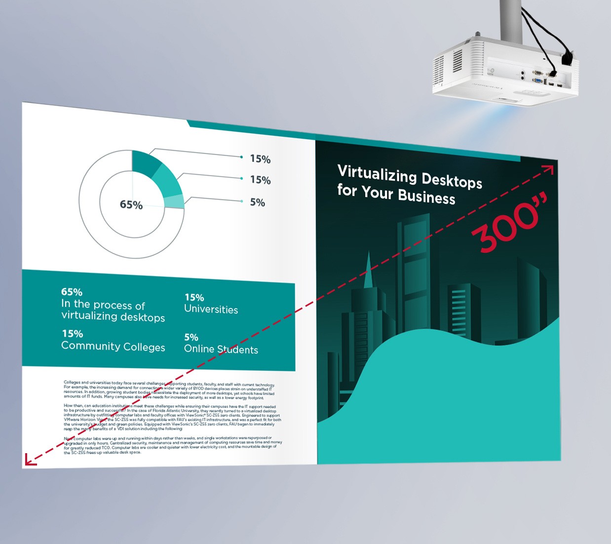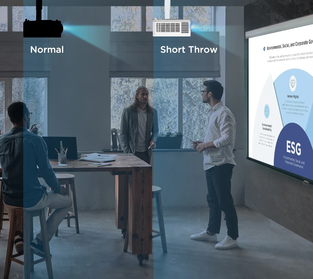 Featuring 4,000 ANSI lumens of stunning brightness, this powerful business and education projector creates crystal clear images up to 300”. And with a 0.52 short throw ratio, this projector is capable of displaying shadow-free 100” images from just a few feet away.