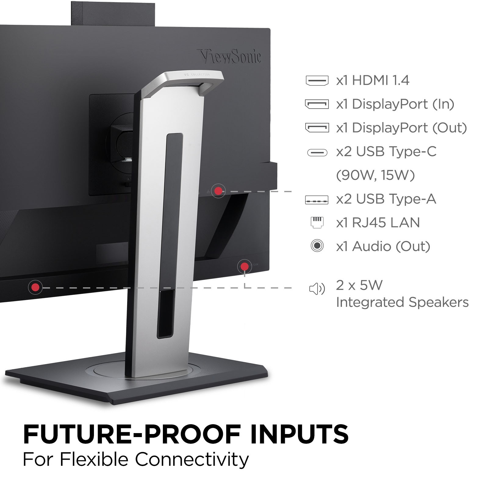 ViewSonic VG2757V-2K video conferencing monitor is a docking monitor with premium features such as a pop-up webcam that will help maintain productive meetings whether in the office or working from home, with secure features like a Windows Hello compatible IR camera and Zoom certification for peace of mind on security and reliable conferencing. Premium webcam features to improve visual and audio aspects of video calls such as built in LED lighting, and powerful speakers, along with a QHD 2560 x 1440p resolution for stunning visuals. The IR camera allows for secure and easy sign-on with Windows Hello. Full docking functionality (daisy chain, USB-C single cable connectivity with 90W power delivery, reliable ethernet connectivity) simplifies accessories needed to deploy for IT infrastructure.