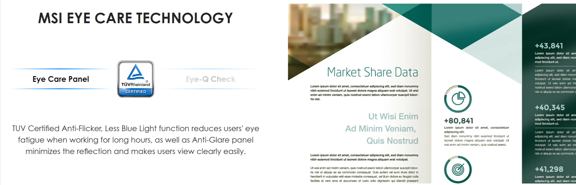 The MSI exclusive software Display Kit provides the most convenient tool, the proper display that allows you to read and enjoy the image at the same time & color mode to you while working or everyday.