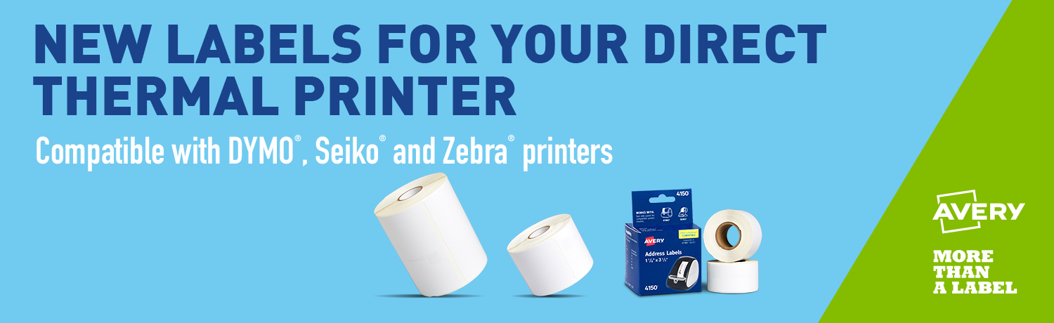 Eliminate the need for expensive ink and toners with Avery Thermal Labels. Compatible with select Dymo, Seiko and Zebra printers, our thermal labels require no ink. Print one label at a time or 100. These labels are smudge-free, scratch- and water-resistant and they repel dirt, dust and grease. Their bright, white material provides reliable contrast and barcode readability, while their permanent adhesive means the labels stick and stay put. Label rolls come in a secure bag to protect the light-sensitive thermal coating and include a use-by date to guarantee quality.