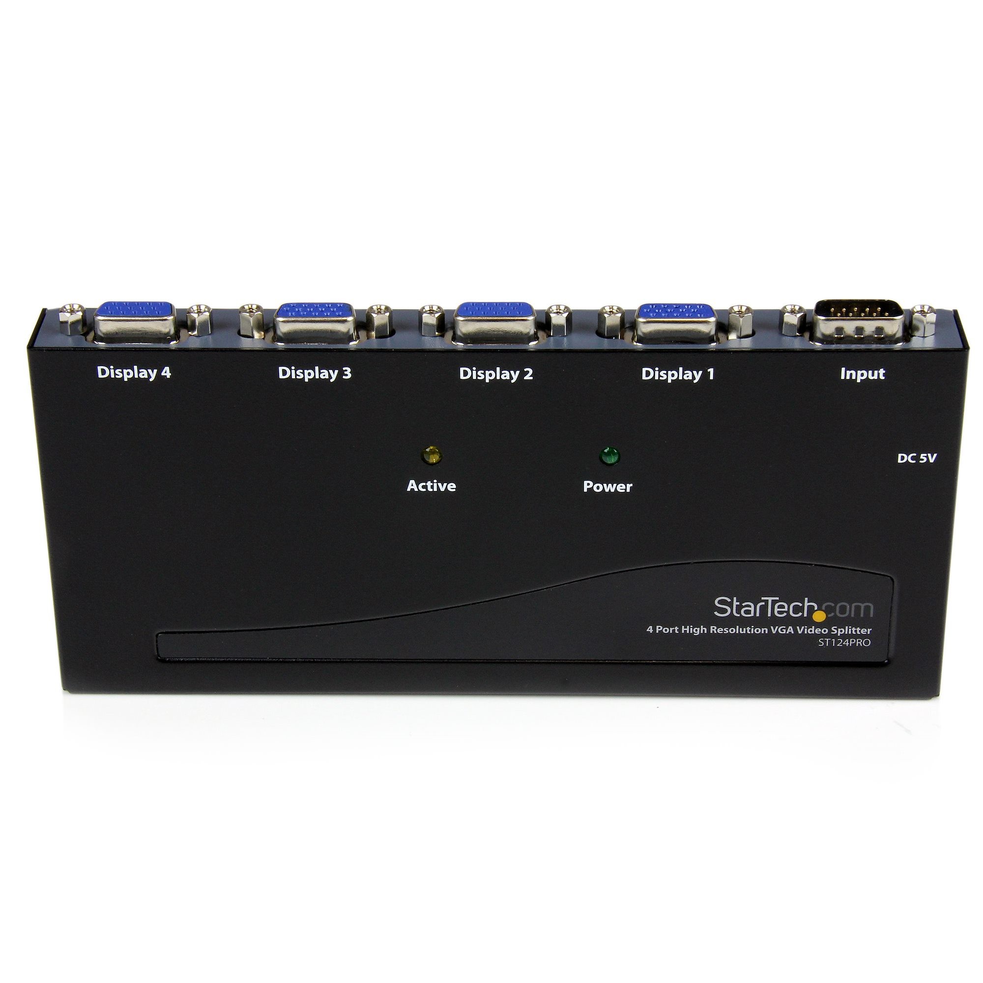 The ST124PRO 4 Port High Resolution VGA Video Splitter - 350 MHz splits a VGA video source signal to 4 monitors or projectors simultaneously - a professional grade solution that is perfect for presentations, classrooms, tradeshows, or in-store displays, where the highest quality video on several monitors is needed.