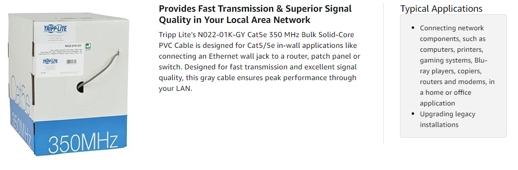 This 1000-ft. cable comes pre-packaged in an easy-to-use pull box. Simply pull what you need for your installation and keep the remainder stowed away.