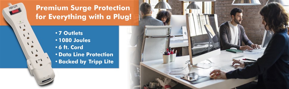 This surge protector is perfect for home and office electronics of all kinds, including computers, monitors, printers, wireless routers, televisions, video game consoles, streaming media players, sound systems, device chargers, DVRs, fax machines, broadband modems, desk lamps and small appliances.