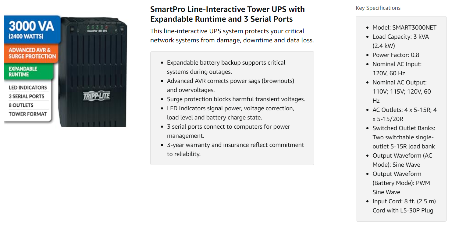 - Extended Runtime: This UPS system allows you to connect one or more optional external battery packs to provide additional backup runtime. Some external battery packs can also be daisy-chained, allowing you to scale runtime to match any application requirement.