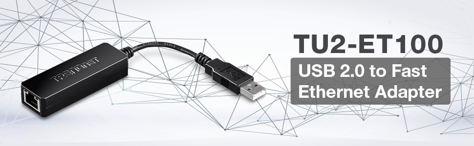 The TU2-ET100 is a high-speed USB 2.0 to Fast Ethernet adapter that allows you to easily connect to a 10/100 Mbps network from a USB enabled desktop, MacBook ® , ChromeBook ™ , or notebook PC. Compliant with USB 2.0 and backwards compatible with the USB 1.1 and 1.0, you can share files and printers and gain access to broadband Internet.