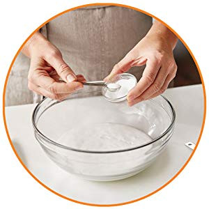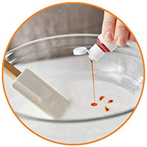 Add desired amount of food coloring, then add 1 tbsp contact lens solution and mix until slime begins to form.
