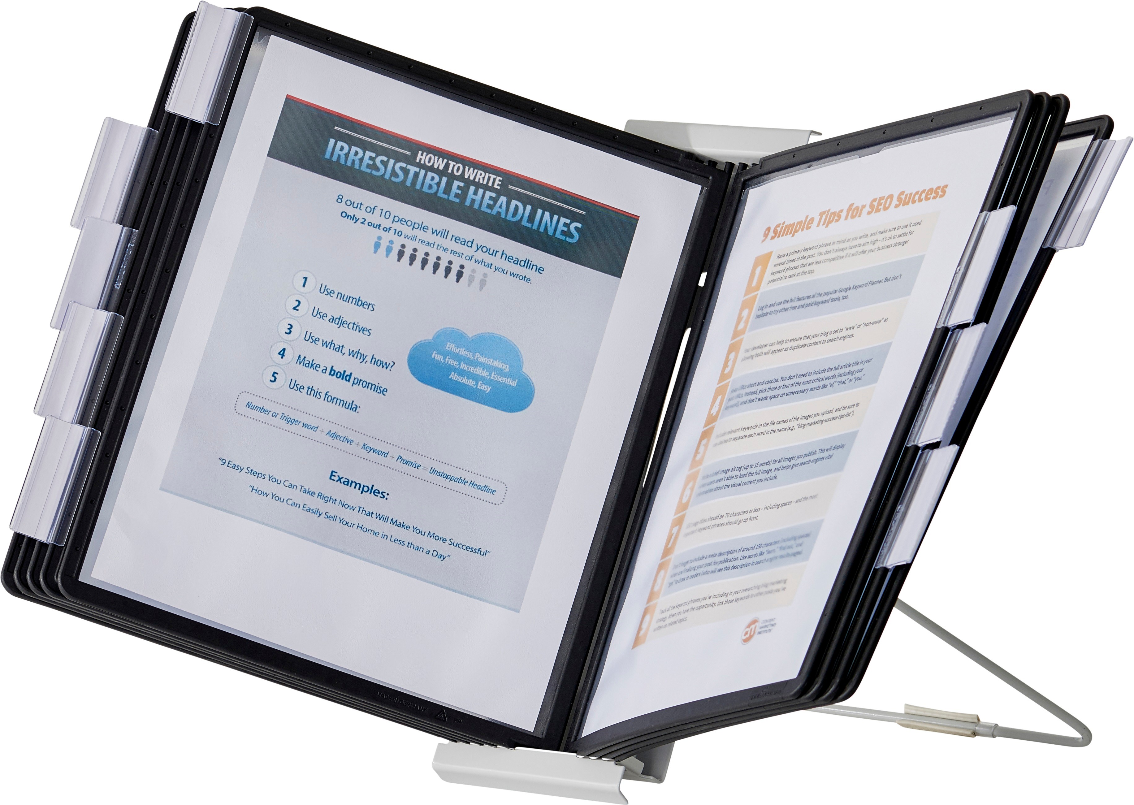 The INSTAVIEW desktop reference system is both strong and cost-friendly. It is a practical solution for keeping frequently used reference documents close at hand.