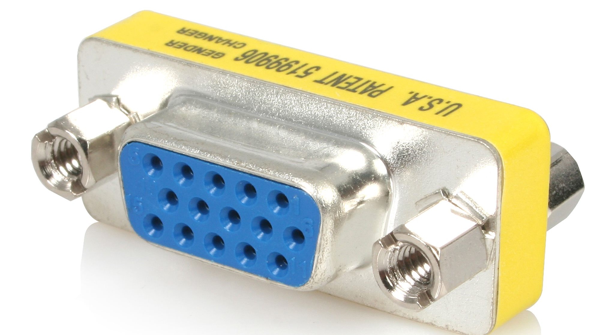 The GC15HSF Slimline Gender Changer (HDDB15F to HDDB15F) converts a High Density DB15 male connector to a High Density DB15 female connector.