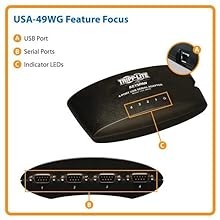 The USA-49WG is easy to use. Its DB9 serial ports are seen as COM ports by your computer, and are available for use by any program that accesses COM ports. It provides a simple way to add serial ports to a PC without the hassle of installing a serial card, turning off the PC or configuring IRQs. There's no need for an external power adapter! The USA-49WG draws power directly from your computer via the USB connection
