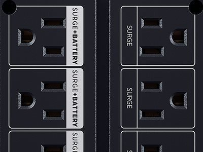 This unit is equipped with five surge and battery protected outlets and five surge protected outlets.