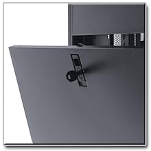 Secure access and efficient airflowThe SR25UBSP1 is designed to provide a safe, secure installation solution for mission-critical rackmount equipment. It contains locking, removable front and rear doors that are perforated to promote efficient airflow, and locking, removable side panels. Locking doors and side panels prevent unauthorized access to installed equipment. The side panels are half size (two per side) for ease of removal and reinstallation. The front door is reversible and the split rear door design reduces clearance requirements for service access so the enclosure cabinet can be placed closer to a wall. The top panel of the SR25UBSP1 is furnished with vents designed to help remove warm air from the enclosure cabinet and draw in cool air by convection. It also supports installation of standard user-supplied case fans. The top panel contains cable routing ports and is designed for quick, toolless removal with no need to disconnect cables. The SR25UBSP1’s open bottom facilitates cable access. |