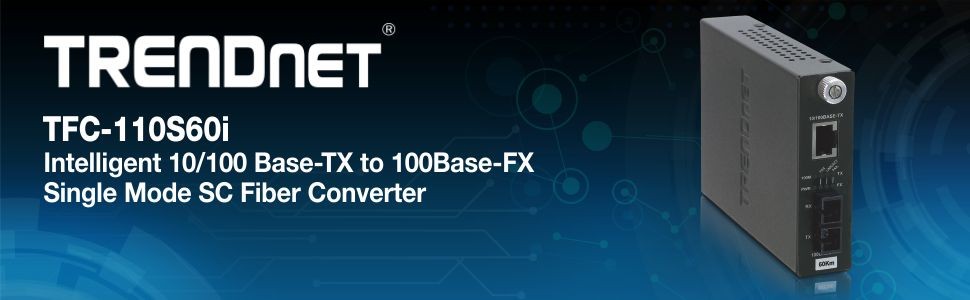 The TFC-110S60i Intelligent Fiber Converter works with the TFC-1600 chassis system or as standalone unit. This converter is a Single Mode SC-Type fiber converter that supports SNMP management and spans distances of up to 60km (37.2 miles). Ports include 1 x 10/100Base-TX (RJ-45) port and 1 x 100Base-FX fiber port (SC-Type).