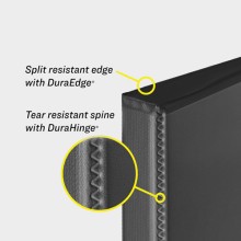 DuraEdge and DuraHinge technology for split resistant edges and a tear resistant spine.