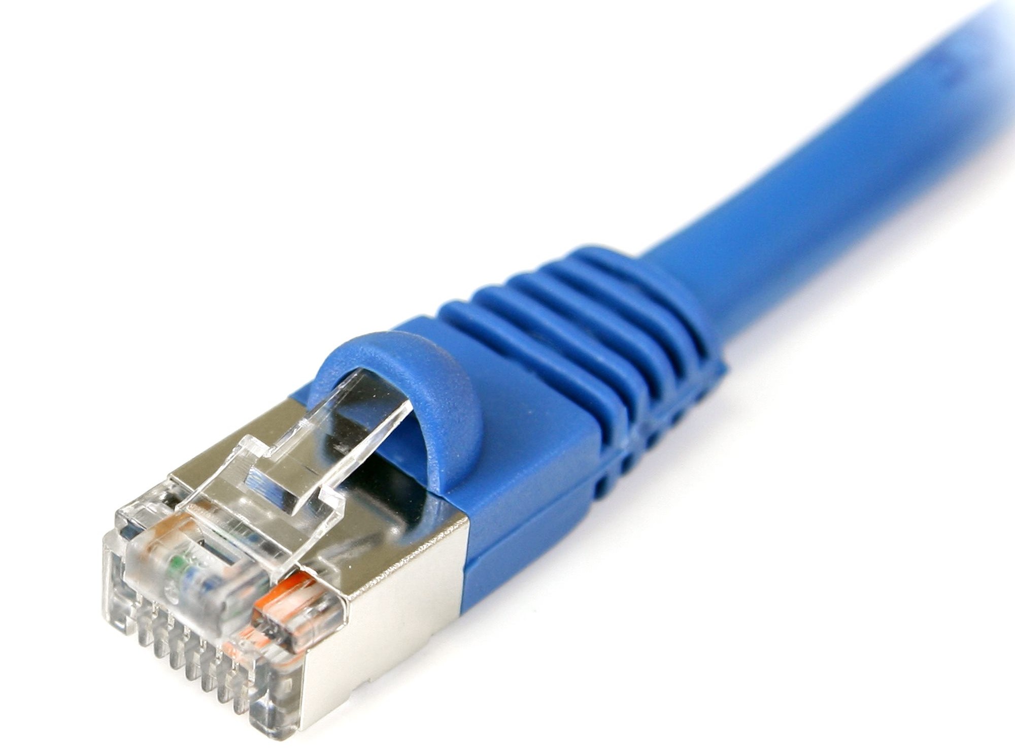 To reduce susceptibility to EMI/RFI and near end cross-talk, the patch cable is shielded throughout the length of the cable, as well as around the RJ45 connectors. Our Cat5e Shielded F/UTP Snagless Patch Cables also feature a snagless design that protects the RJ45 clip from snagging during installation, as well as PVC molded strain relief that prevents the RJ45 connector termination point from bending at sharp angles - reducing the risk of cable damage.