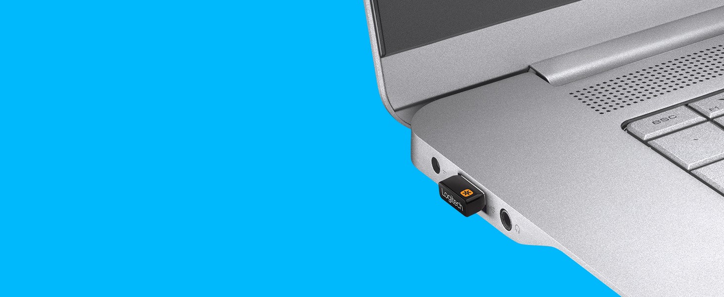 One tiny Logitech Unifying Receiver connects both the keyboard and mouse to your laptop with reliable, long-range wireless technology and secure 128-bit AES encryption