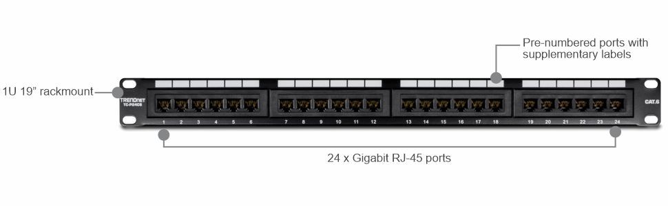 Get ready for copper Gigabit Ethernet with TRENDnet's jack. 6 RJ-45 UTP patch panels. These patch panels are certified for 250Mhz Category 6, which is perfect for copper Gigabit Ethernet connections. TRENDnet 24-port Cat. 6 patch panels are ideal for Ethernet, Fast Ethernet, and copper Gigabit Ethernet (1000Base-T) network applications. Using the TRENDnet cat. 6 products now, will prepare you for high-bandwidth networking in the future without rewiring your network.