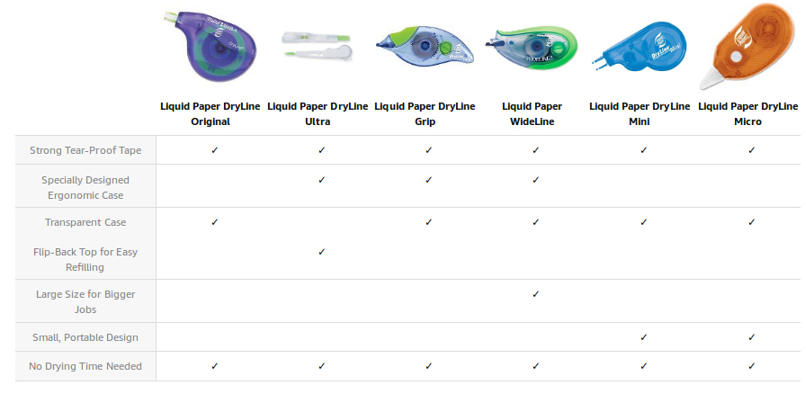 Make quick and easy corrections to your written or typed text Make no mistake about it, Paper Mate Liquid Paper DryLine Correction Tape has got you--and your mistakes--covered. At nearly 40 feet long, the DryLine Correction Tape contains Liquid Paper's longest tape available, making it perfect for school and for work. Like most Liquid Paper correction tape products, DryLine tape lays down absolutely smooth and corrects instantly with no mess. So you never need to wait for it to dry before copying, faxing, rewriting or typing. The super strong tape resists breaking and tearing for a correction product you can truly rely on.- Side application improves visibility while correcting