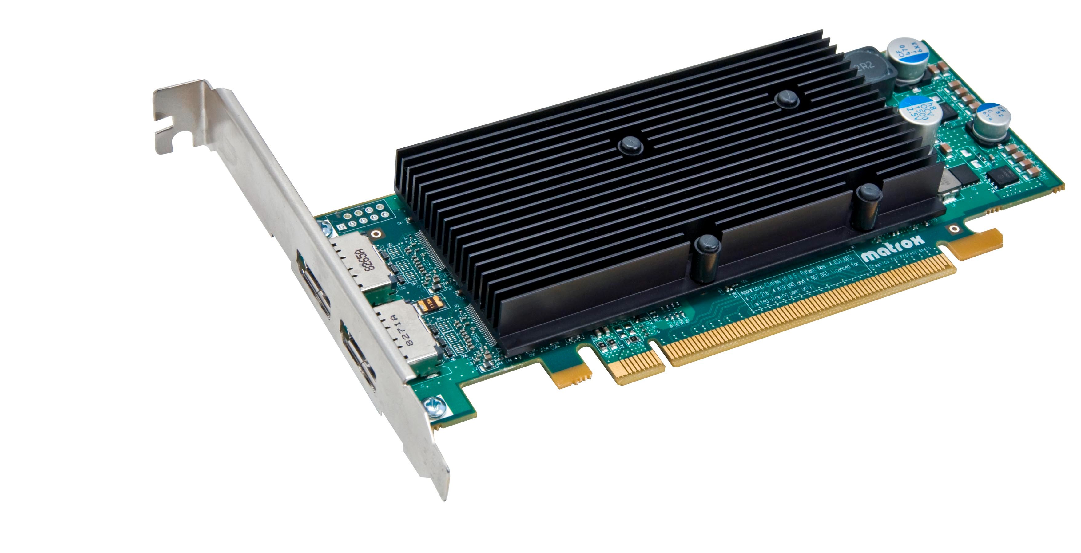 The Matrox M9128 LP PCIe x16 dual monitor graphics card renders pristine image quality on up to two DisplayPort™ monitors at resolutions up to 2560x1600 per output. With 1 GB of memory and advanced desktop management features, the M9128 LP PCIe x16 card supports both independent or stretched desktop modes and is the economical choice to drive business, industrial, and government applications with extraordinary performance. Its low-profile form factor makes it easy to integrate into a wide variety of systems. It offers multiple operating system support, and can be paired with another M-Series card for additional monitor support.