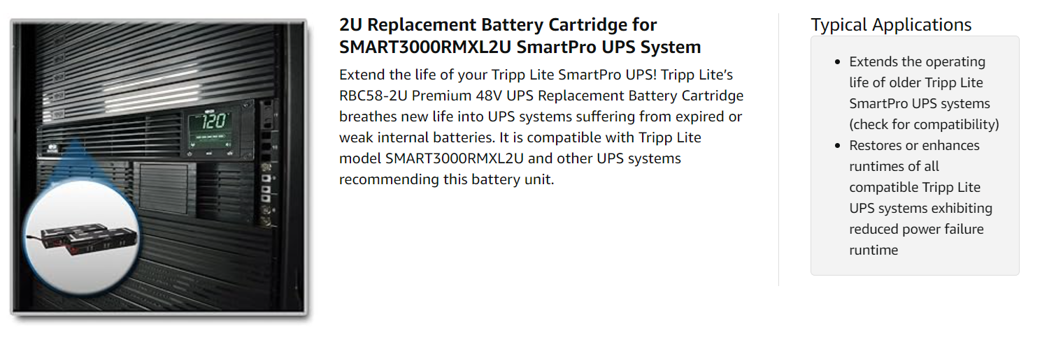 Like every Tripp Lite battery cartridge, the RBC58-2U is carefully screened and certified to meet or exceed original manufacturer specifications.